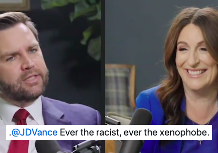 JD Vance is your average racist, worthy of both your disdain and disgust. He is a useless, inbred weasel that doesn’t represent the people of this country. He has NO integrity or decency or honor. He is extremely unpopular and he knows it, so just throwing bones to the MAGA base.